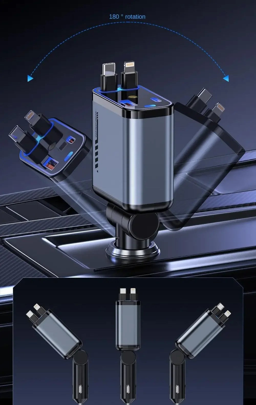 Révolutionnez vos voyages avec le chargeur Eydeneya , le chargeur de téléphone pour véhicule 4 en 1 qui allie puissance, polyvalence et praticité. Conçu pour s'adapter à toutes les situations, il devient vite un indispensable dans votre voiture.